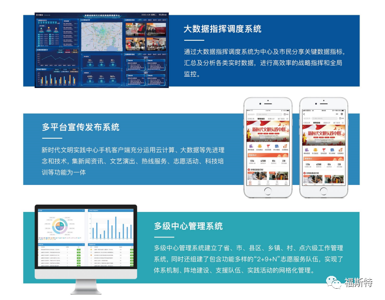 安徽福斯特信息技術(shù)有限公司持續(xù)助力新時(shí)代文明實(shí)踐中心建設(shè),充分利用大數(shù)據(jù)、云計(jì)算、移動(dòng)互聯(lián)網(wǎng)等新一代信息技術(shù),打造新時(shí)代文明實(shí)踐中心云平臺(tái),完善平臺(tái)動(dòng)員、整合、引導(dǎo)、服務(wù)、創(chuàng)新和保障能力,實(shí)現(xiàn)新時(shí)代文明實(shí)踐中心的可持續(xù)運(yùn)營(yíng)。